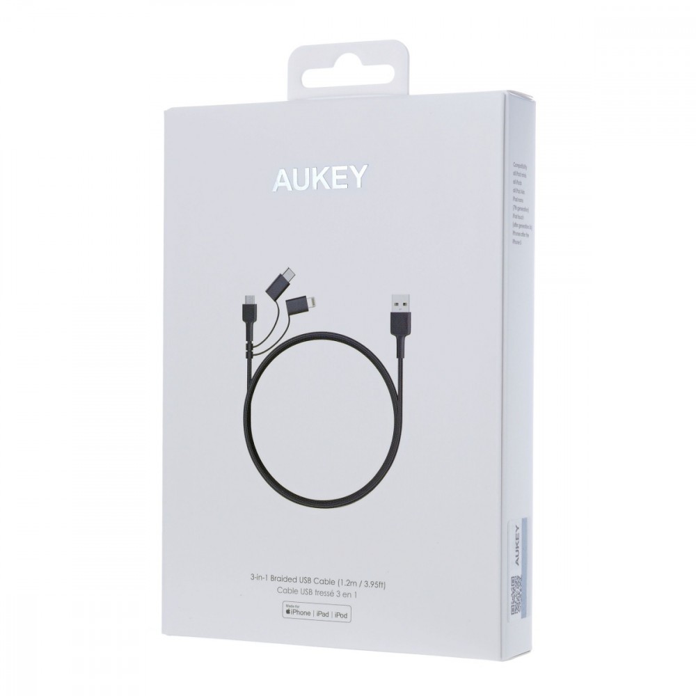 AUKEY CB-BAL5 3w1 nylonowy kabel Quick Charge micro USB | USB C | Lightning | 1.2m