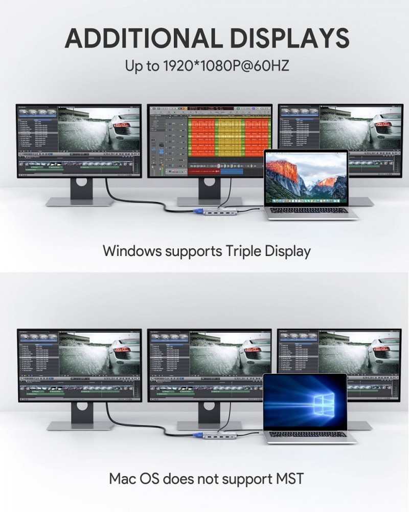 Proste ładowanie: Port zasilania USB-C o mocy 100 W umożliwia ładowanie MacBooka i innych kompatybilnych laptopów i smartfonów USB C-PD (przy użyciu oryginalnego zasilacza do urządzenia), przy jednoczesnym wykorzystaniu wszystkich innych funkcji koncentratora