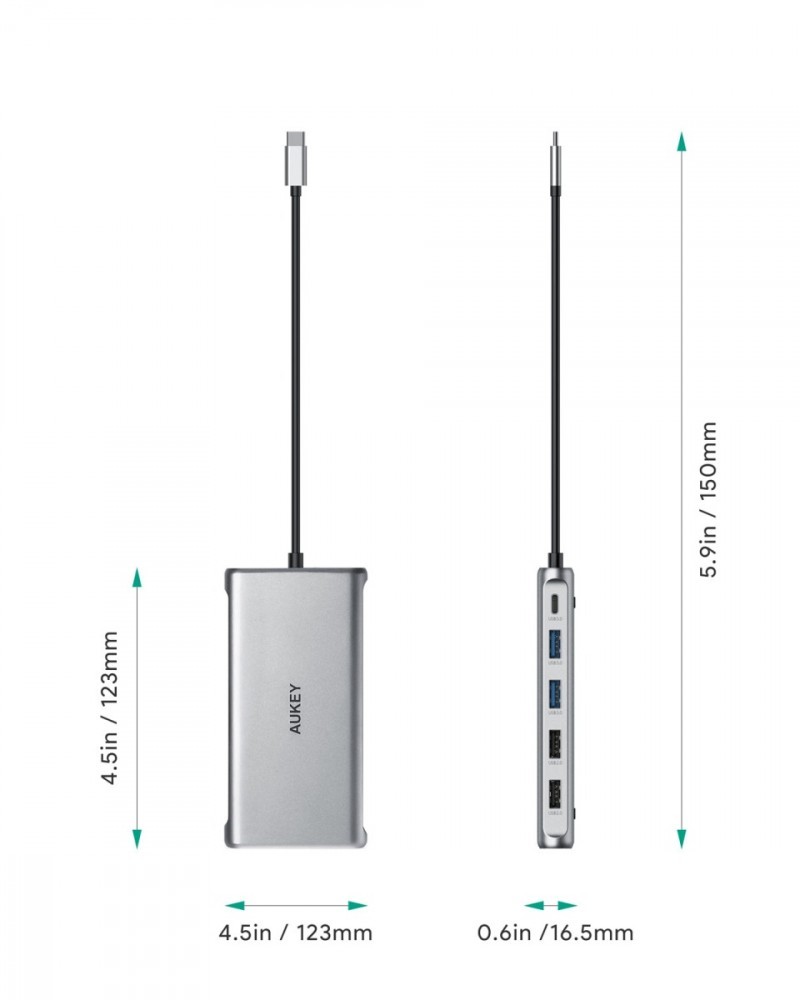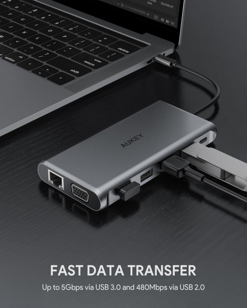 AUKEY CB-C78 Ultranowoczesny, kompaktowy, aluminiowy HUB USB-C PD 12w1