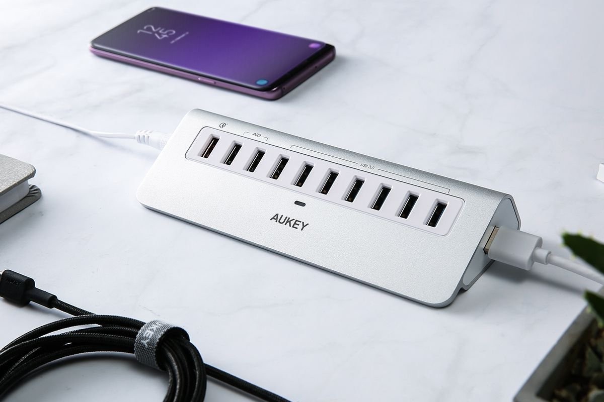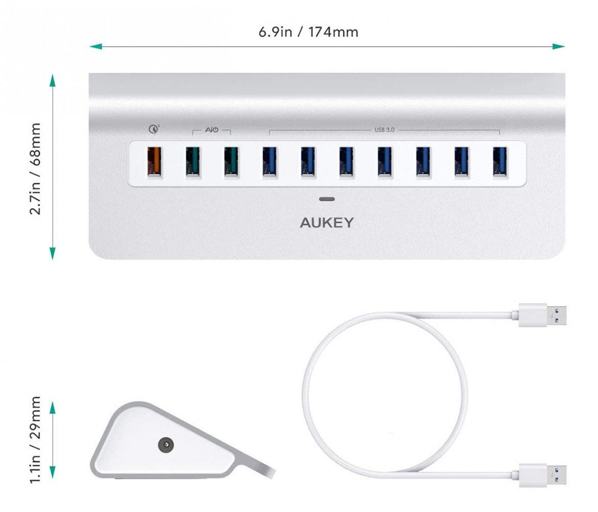 AUKEY CB-H6S aluminiowy Hub 10xUSB | 10w1 | 7xUSB 3.1 | 2xUSB AiPower | 1xUSB Quick Charge 3.0