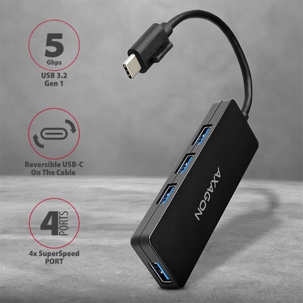 AXAGON HUE-G1C Hub 4-portowy USB 3.2 Gen 1 SLIM kabel Type-C 14cm
