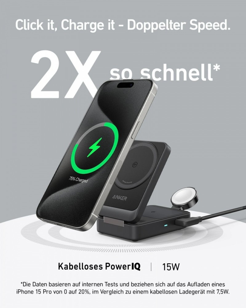 Anker Ładowarka MagGo 15W 3w1 składana czarna EU