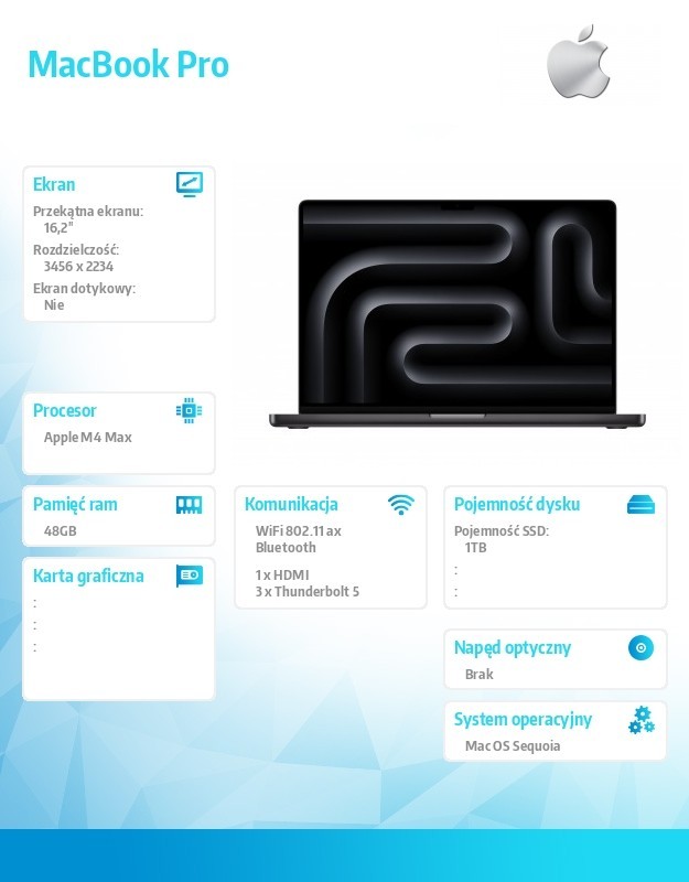 Apple MacBook Pro 16.2 cali: M4 Max 16/40, 48GB, 1TB SSD - Czarny