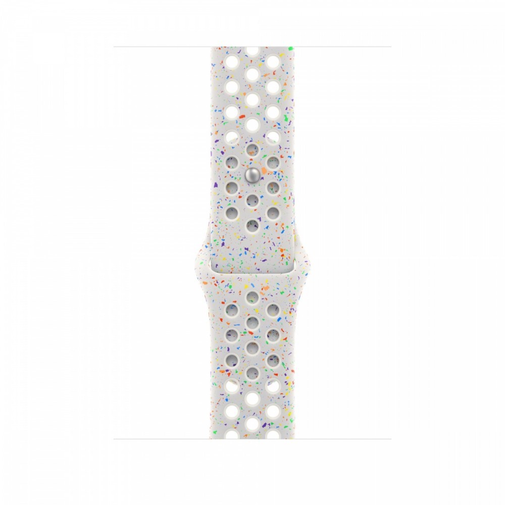 Pasek sportowy Nike jest mocny i wytrzymały, a jednocześnie zaskakująco miękki. Jego przewiewność zwiększają specjalnie wytłoczone otwory. Kolorowe płatki ułożone w losowe wzory nadają każdemu paskowi niepowtarzalny wygląd. Gładki, zwarty materiał jest przyjemny w dotyku i elegancko oplata nadgarstek. A napa w nowym aluminiowym zapięciu z napą i szlufką ma teraz matowe wykończenie.