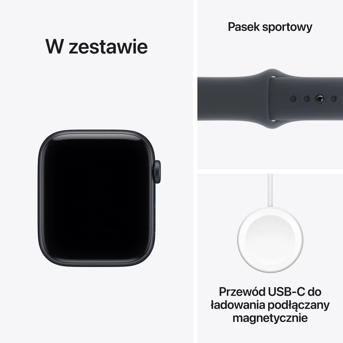 Akcesoria w zestawie: Pasek Przewód USB-C do szybkiego ładowania Apple Watch podłączany magnetycznie (1 m)