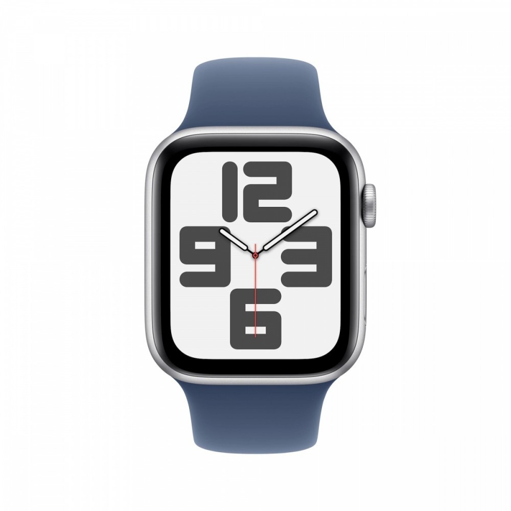 Apple Watch SE GPS, koperta 44 mm z aluminium w kolorze srebrnym z paskiem sportowym w kolorze denim - rozmiar S/M