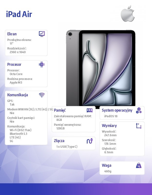 Apple iPad Air 11 cali WiFi + Cellular 128GB Szary