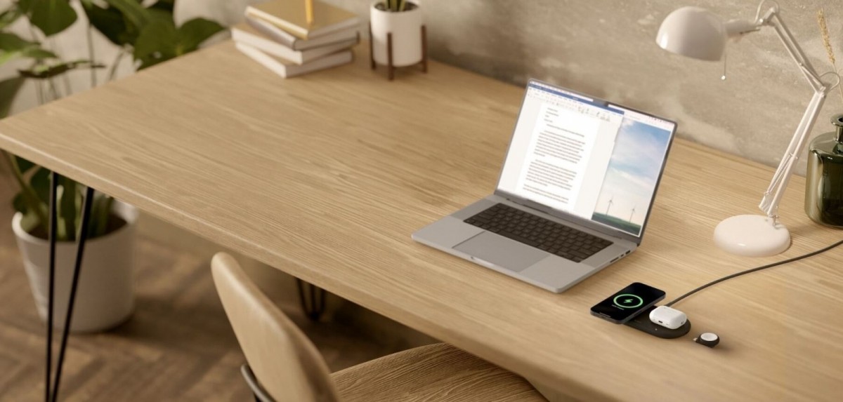 | Akcesoria w zestawie | Bezprzewodowa podkładka ładująca 3 w 1 z technologią ładowania magnetycznego Qi2 15 W Kabel USB-C na USB-C o długości 1,5 m Zasilacz USB-C |