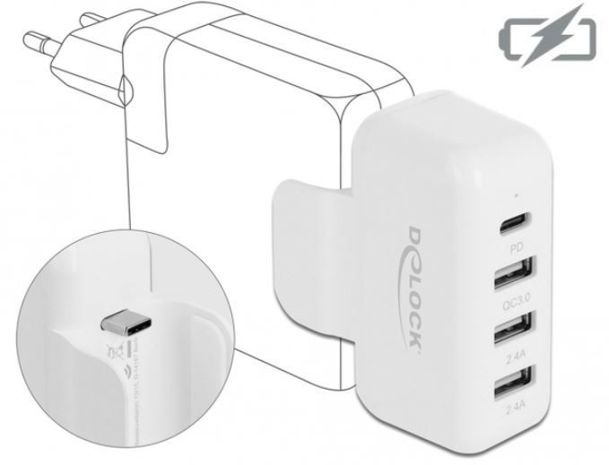 Adapter Delock można włączyć do zasilania Apple, np. MacBook Pro i rozszerzyć zasilanie do czterech portów ładowania. Umożliwia to jednoczesne ładowanie kilku urządzeń USB.