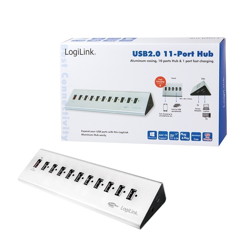 LogiLink Hub biurkowy 10xUSB 2.0 z zasilaczem
