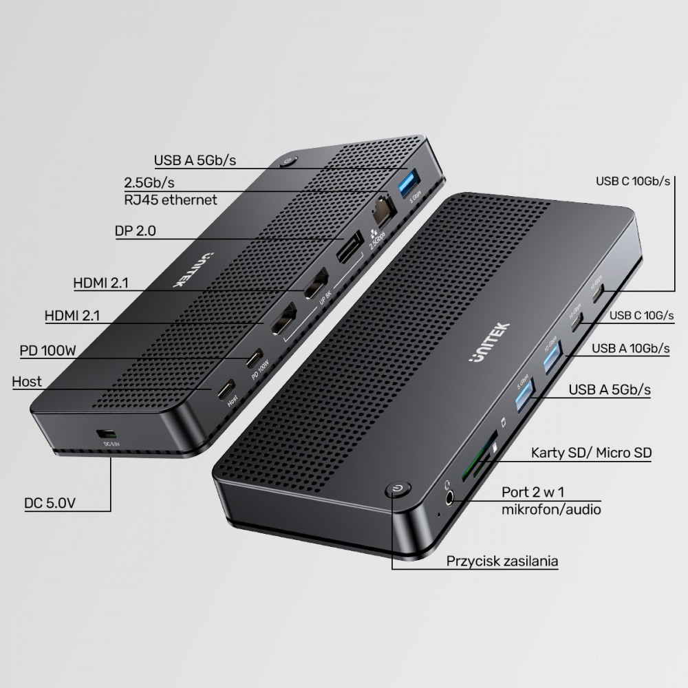Unitek Stacja dokująca 13w1 USB-C, HDMI 2.1,DP 2.0,RJ45,10GBPs;D1104A01