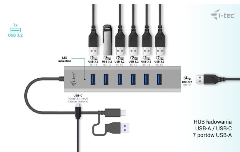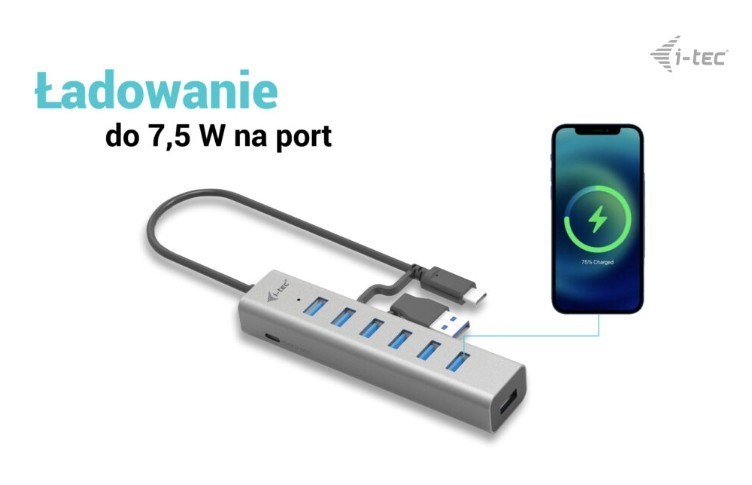 - HUB ładujący USB-A/USB-C dla maksymalnie 7 urządzeń